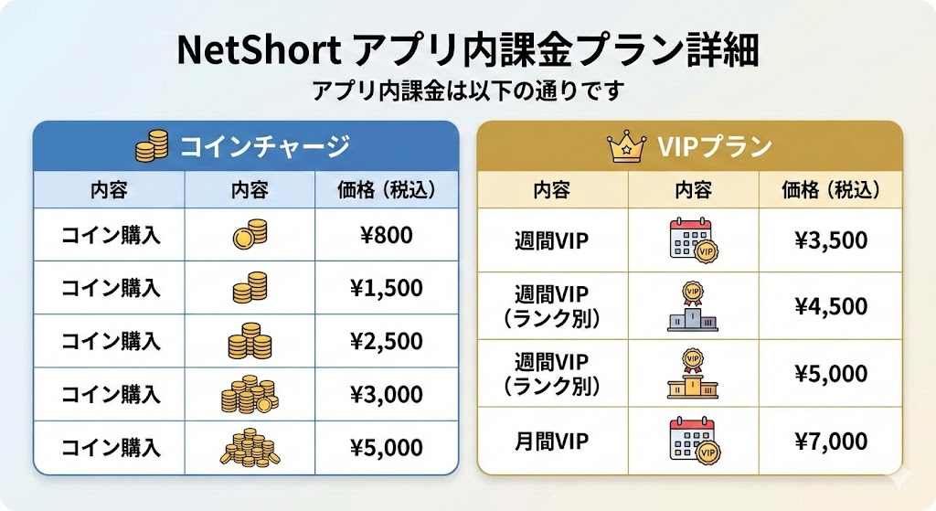 ちなみにNetShortのアプリ内課金は以下の通りです。