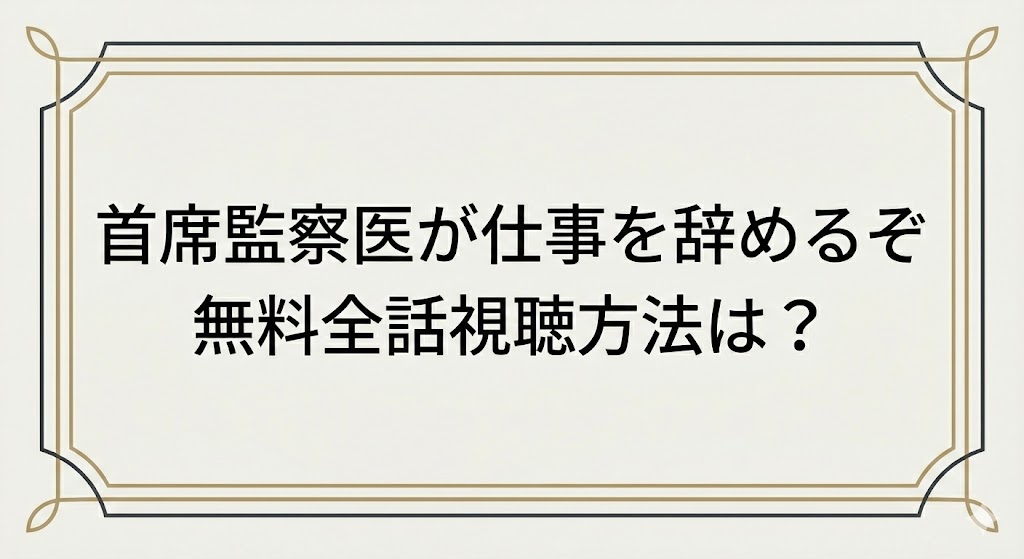 首席監察医が仕事を辞めるぞ YouTube配信は?