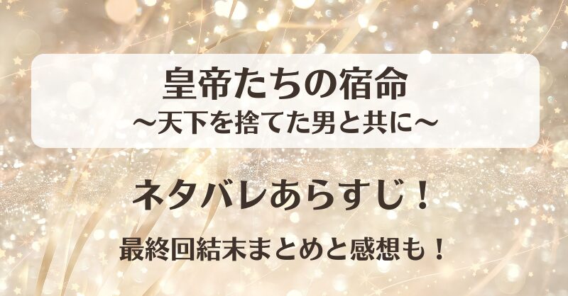 そんなメッセージを象徴するように、二人はしっかりと手を取り合い、新しい未来へと踏み出していきます。宿命に翻弄され続けた皇帝たちが、ようやく見つけた心の安らぎと共に、物語は温かく感動的なフィナーレを迎えます。